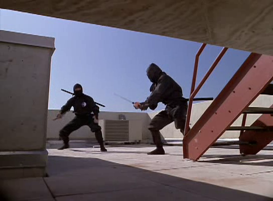 Tak už z popisu je jasné, že ten film je pěkná ptákovina. Co čekat od Cannonu. Začátek ovšem stojí za to. Japončík v obleku vleze do jeskyně, převleče se do ninjovského a pak jde na golfové hřiště, kde rozseká asi deset lidí. Pak ho pronásleduje policie, přičemž ninja jich asi padesát pobije a zničí vrtulník, na který prve naskočí a pak z něj zase před pádem vyskočí, a nakonec je prostřílen stovkami kulek, ale ani to ho nezabije, ještě se zahrabe do země, počká, až policie odjede a pak se vyhrabe a vydá se dál do pouště. Tam narazí na spojařku, kterou se napřed pokusí uškrtit, pak jí předá svůj meč a konečně zemře. Nebo ne? No samozřejmě že ne.